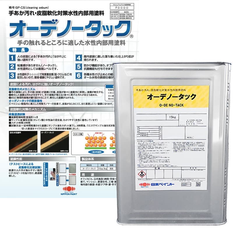 皮脂低汚染型塗料は手あか汚れに強く皮脂による粘着感がありません。屋内の枠や建具などの木部と鉄部塗装に適しています。