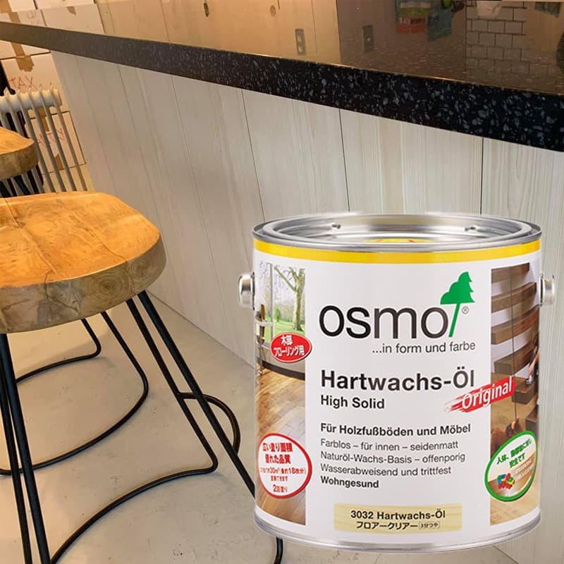 ドイツオスモ社の木質フロアーオイルの主成分は植物油です。塗装面は木の風合いや感触を残し優れた撥水性と耐摩耗性があります。また家具やカウンタートップのオイル仕上げにも使えます。
