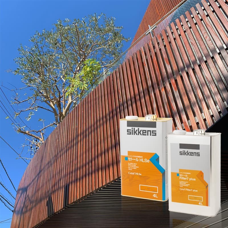 オランダのメーカーであるシッケンズ社の塗料は、酸化鉄系無機顔料と添加剤の組み合わせにより優れた撥水性と耐候性があります。木材に浸透しつつ表面に塗膜を形成し、木の質感や伸縮と呼吸を邪魔しない浸透性を持ち、揮発性有機化合物(VOC)の少ない環境配慮型塗料です。