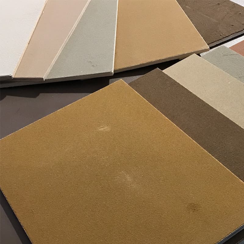 イタリア・ECOMAT社によって開発され、高機能性とデザイン性を兼ね備えた鏝(コテ)塗り意匠仕上材です。当初、床面用として開発され、表面耐久性、耐摩耗性に優れています。さらに、高い柔軟性と追従性により、曲げなどによるクラックが起こりにくいため、曲面や複雑な形状の下地にも施工可能です。独自の表面コーティングを施すことで、高い耐水性と優れた防汚性を獲得。水廻りなどにも安心して施工することが可能です。また、モルタル、石材、木材、ガラス、プラスチック、金属などあらゆるモノへの施工が可能。アクリル樹脂の代替としてひまわり油由来のポリマーの比率を増やすことにも成功。合成樹脂の使用量を抑制することで環境への取り組みも積極的に行なっています。さらに、国際的食品衛生基準HACCP(ハサップ)対応ですので、食品業界や医療業界などの施設にも適していると言えます。