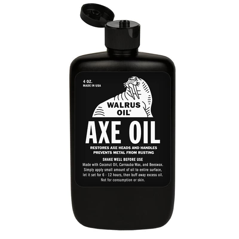 すべての木こりや木工職人は、斧が錆びないようにし、十分に油をさす必要があることを知っています。そのため、ウォルラスオイル社は、Best Made Co. の創設者であり、 「 Buchanan-Smith‘s Axe Handbook 」の著者であるPeter Buchanan-Smithと協力して 、古い手斧と斧を生き返らせ、何十年も使用できるように適切に維持するための完璧なコンディショナーを調合しました。ココナッツ オイル、カルナウバ ワックス、蜜蝋などのすべての天然成分で作られており、撥水ワックスで斧を保護しながら、柄と斧の頭の両方を整え、自然に元の特性を回復させます。オールインワンの斧用オイルは、ジェルのように伸びがよく、亜麻仁油を含まないため、斧の頭にべたつきません。