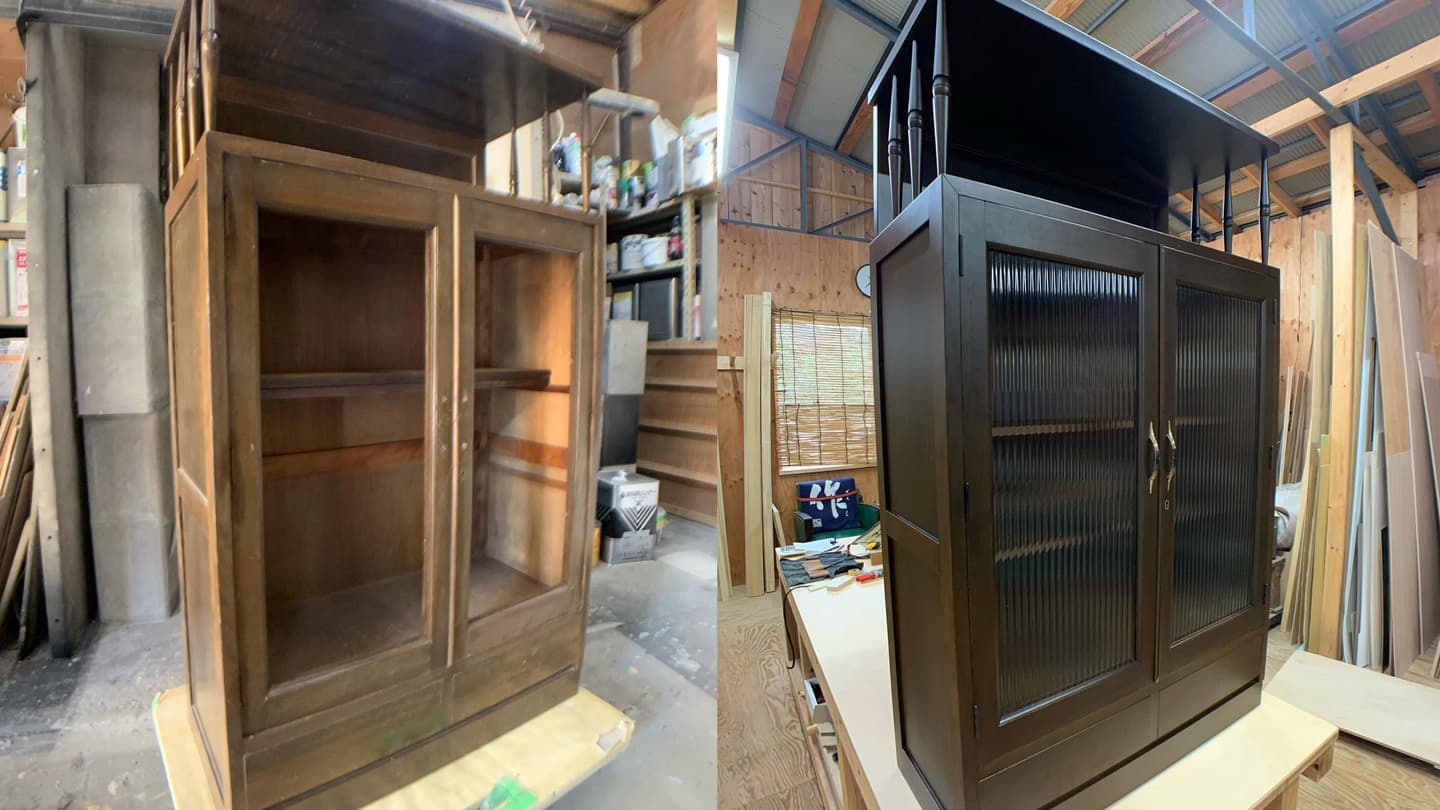 鉄部のデコレーションや防錆対策としての塗装には、主に金属・木材・プラスチックなどに塗装可能な「SCHUPPENPANZERアイアン塗料」を中心に対応しています。建屋鉄部・鉄製家具などの保護修復塗替え、一般の門扉・手摺・取手・アルミサッシ等の金属製品まで屋外・室内を問わず使用可能で、仕上がった表情には独特のざらつきや凹凸が生まれ、デコレーションが際立ちます。日常で多く触れて、擦れることでその表情は一層深みを増し、経年変化が楽しめる施工方法となります。